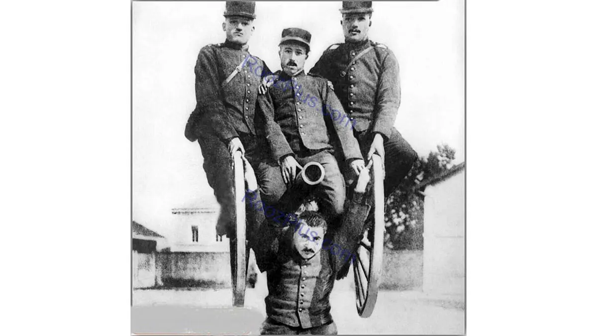 رکنا: مردی که گفته میشود قوی ترین مرد جنگ ارتش فرانسه در سال 1917 بود. او در این عکس یک توپ جنگی را به همراه 3 مرد بلند کرده است!