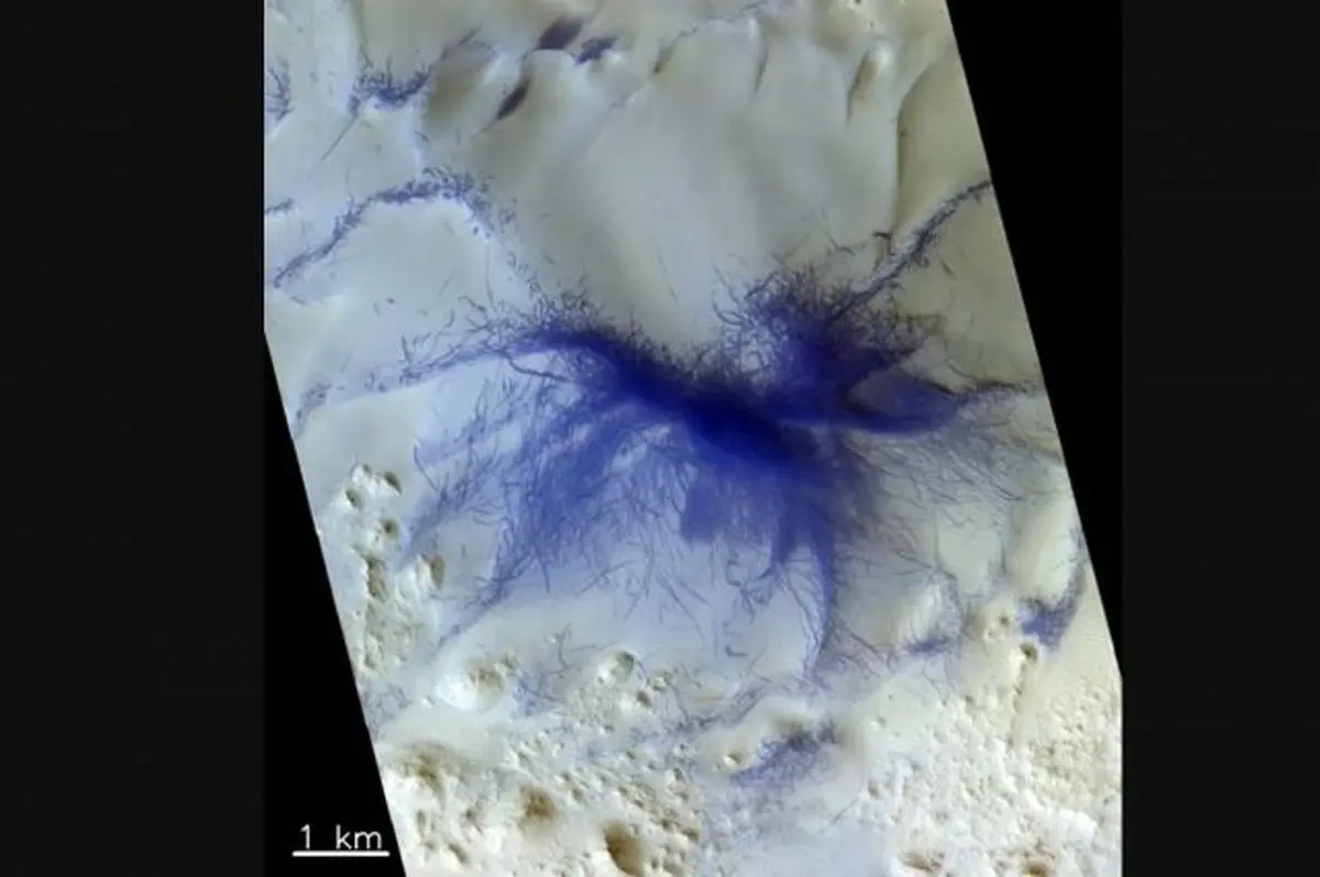 رکنا: آژانس فضایی اروپا(EA) اخیراً تصاویر باورنکردنی از سطح مریخ شکار کرده است که یک عنکبوت مودار آبی رنگ را بر روی سطح سیاره سرخ نشان میدهد اما واقعاً این رگههای آبی روی مریخ چیست؟