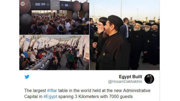 ماه رمضان 5 ماه مه آغاز شد و این میز افطار یکی از بزرگ مقیاس ترین پروژه های اجرایی شده مصر اعلام شده است. در حال حاضر در پایتخت اداری جدید که ده ها کیلومتر با قاهره فاصله دارد ساختمان سازی جریان دارد.برای ورود به کانال تلگرام ما کلیک کنید.