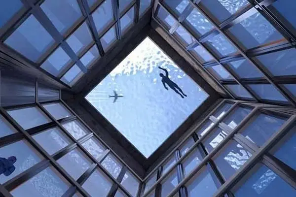 این استخر از هر زاویه ظاهری جذاب دارد و دیوارهای چار طرف استخر و کف آن کاملا شفاف و شناگران میتوانند در حین شنا کردن دیدی کامل از اطراف و زیر خود داشته باشند.