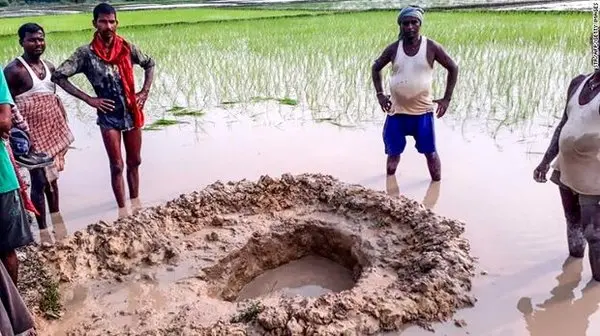 به نظر میرسد یک شهاب سنگ به اندازه توپ فوتبال در شالیزاری در شرق هند فرود آمده است.