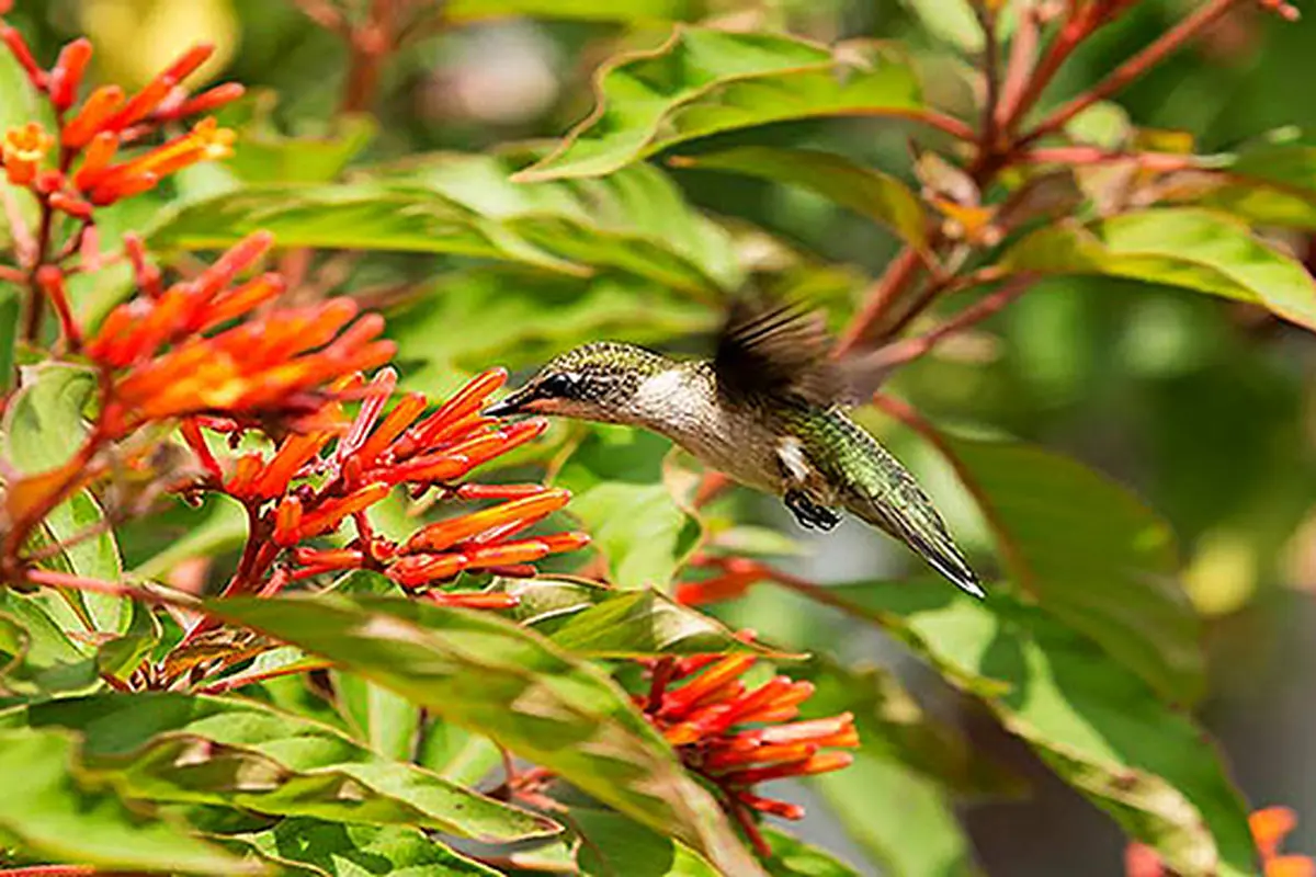 مرغ مگس از زبانش که مثل یک پمپ کوچک عمل میکند برای مکیدن مایع شیرین گلها استفاده میکند.