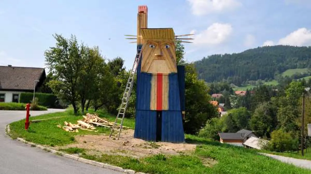 مجسمه چوبی و مسخره ترامپ در زادگاه ملانیا+عکس