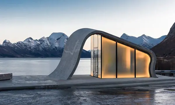 نروژ زیباترین توالت عمومی جهان را ساخته است. در نگاه اول به نظر میرسد این ساختمان یک چیدمان هنری زیبا یا بخشی از یک آزمایشگاه پیشرفته باشد، اما چیزی جز یک سرویس بهداشتی عمومی نیست که توسط معماران «ماریت جاستین هاوگن» و «دن زوهر» از اسلو طراحی شده است.