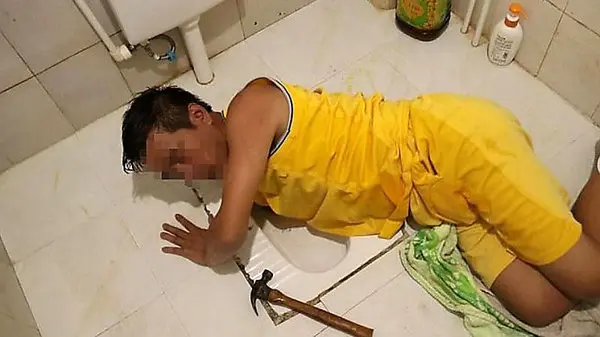 گیر افتادن مرد چینی داخل چاه توالت + عکس