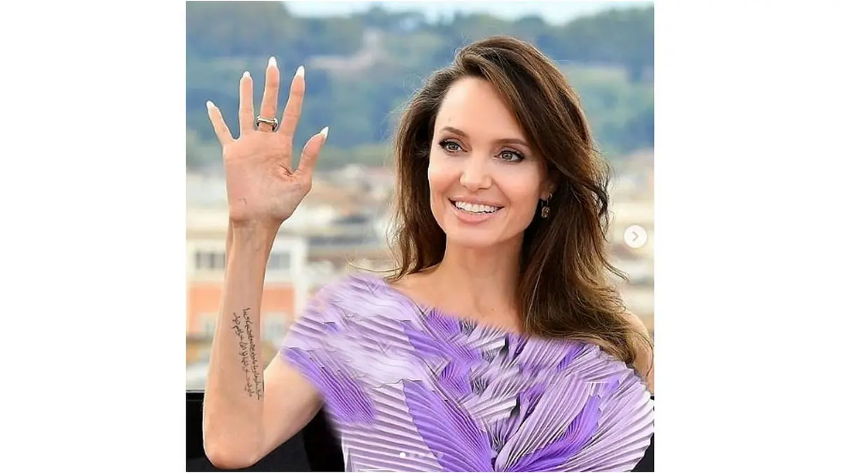 آنجلینا جولی در مراسم اکران فیلم خود در رم با خالکوبی فارسی که روی آرنج او دیده می شد حضور یافت .