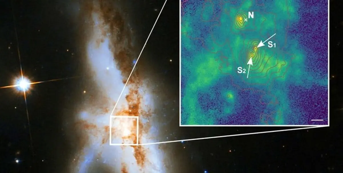 کهکشان یادشده که NGC 6240 نام دارد، سه سیاه چاله را در درون خود جای داده است. سیاه چاله اول که در شمال این کهکشان قرار دارد، هنوز فعال است و قبلا هم شناسایی شده بود. اما دو سیاه چاله دیگر در جنوب کهکشان NGC 6240 قرار دارند و کم و بیش سبز رنگ هستند.
