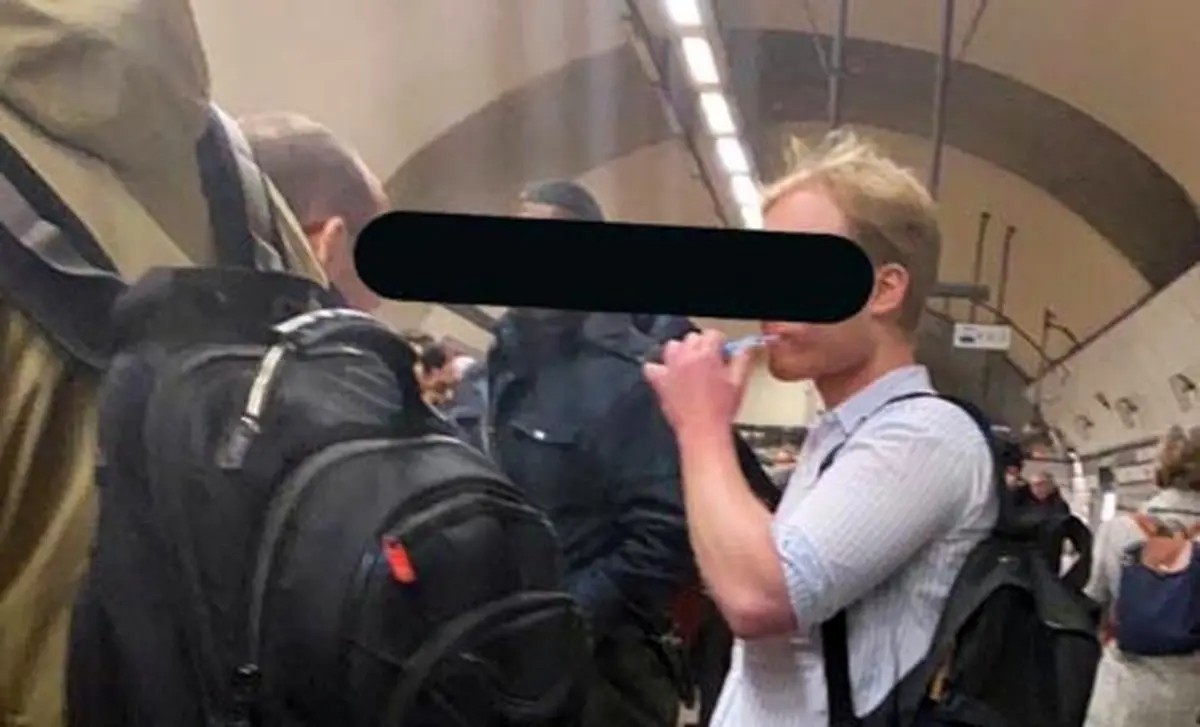 رکنا: انتشار تصاویری از یک پسر جوان که در حال مسواک زدن روی سکوی ایستگاه راه آهن لندن بود سوژه رسانه ها شد.