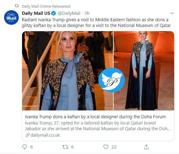به گزارش رکنا،پوشش «ایوانکا ترامپ» دختر «دونالد ترامپ» ریس جمهور آمریکا در حاشیه مشارکت اش در کنفرانس دوحه ۲۰۱۹ خبرساز شد.