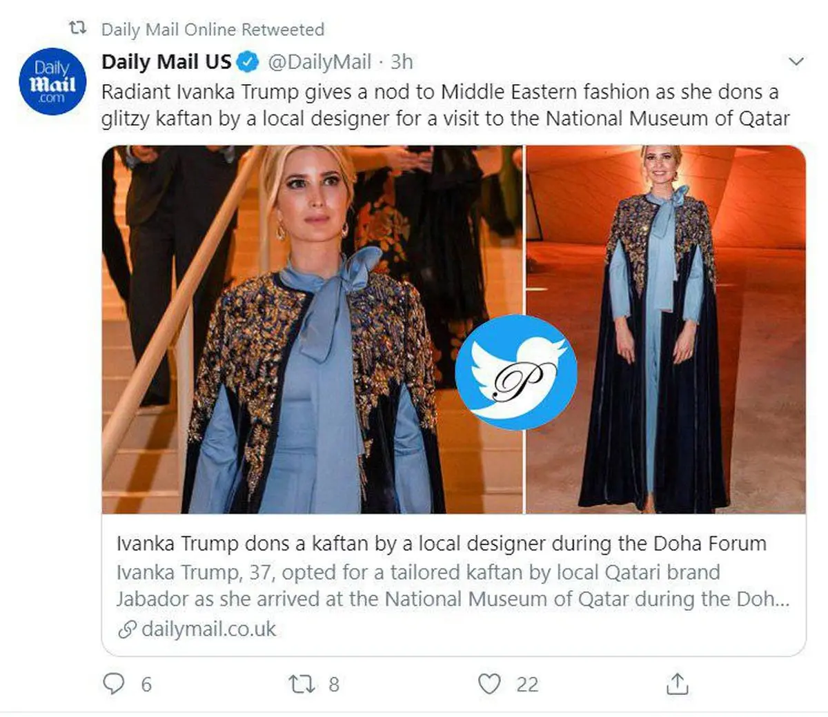 ایوانکا با این پوشش جدید خود در مراسم اختتامیه در موزه ملی قطر ظاهر شد.
