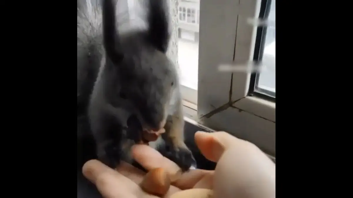رکنا : یک سنجاب با آمدن در کنار پنجره خانه مسکونی از صاحبخانه غذا گرفت.