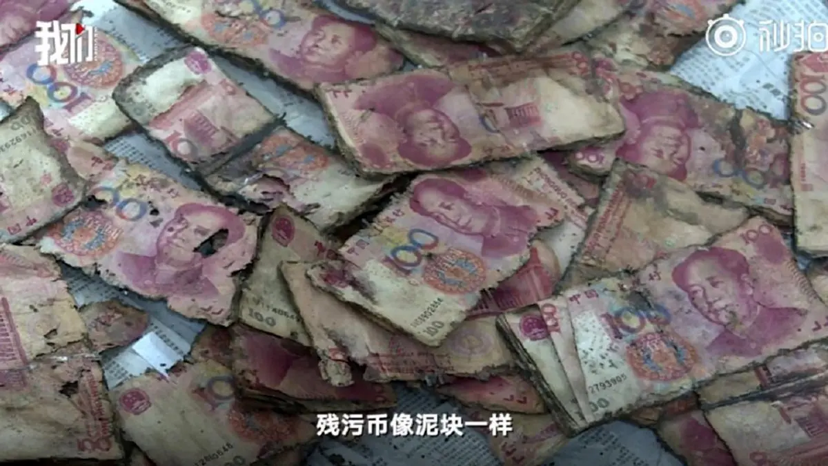 مسئولین بانک پس از بررسی پولهای مرد چینی که از زیر خاک بیرون آورده شده بود به این نتیجه رسید که پولها غیرقابل استفاده است و از تعویض آن خودداری کرد.