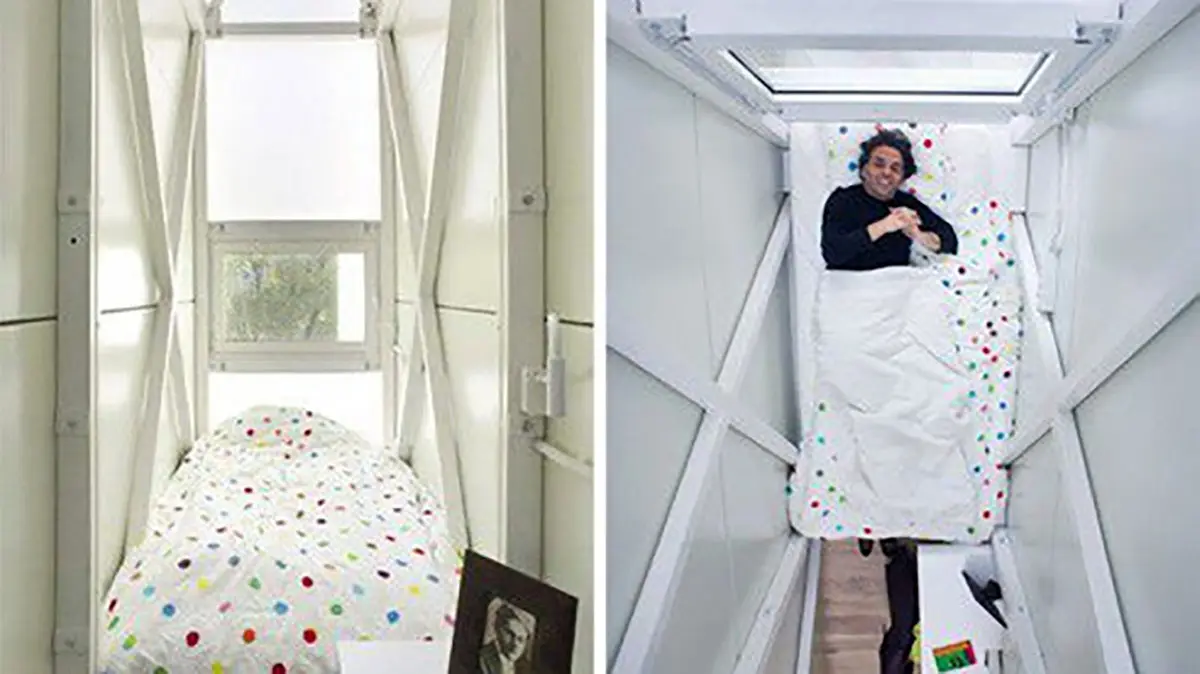 در این گزارش آمده است: اگر چه این آپارتمان بسیار کوچک است، اما تجیهیزات مدرنی دارد. در اتاق خواب یک تختخواب با نردهای بین دو دیوار وجود دارد.