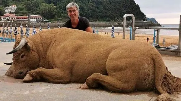 به گزارش رکنا ، آندونی باستاریکا هنرمند اسپانیایی تقریباً یک دهه است که در منطقه باسک زادگاهش مجسمههای شنی فوقالعادهای از حیوانات خلق میکند. اما اخیراً انتشار عکسی از مجسمهاش که به شکل گاو بود باعث شهرت او شد. در این مجسمه حتی عضلات و موهای پیشانی با ظرافت خاصی طراحی شده است. این تصاویر واقعبینانه در شبکههای مجازی منتشر شد و همه را شگفتزده کرد؛