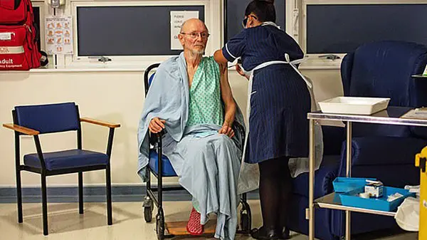 حوادث رکنا:مردی به نام ویلیام شکسپیر به دومین فردی در جهان تبدیل شد که واکسن رسمی کرونا دریافت می کند.