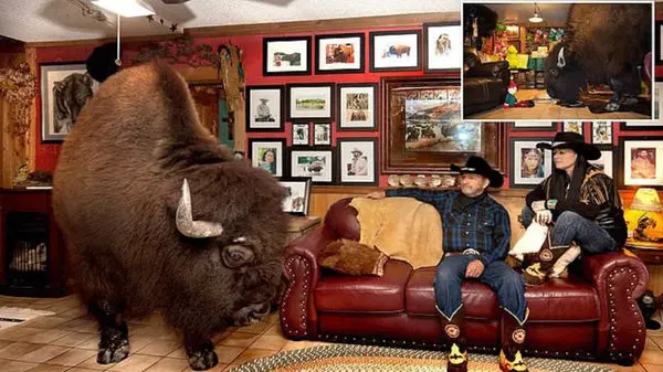 حوادث رکنا:تصاویر زندگی زوج تگزاسی با یک بوفالوی غول پیکر در داخل خانه مورد توجه کاربران قرار گرفته است.