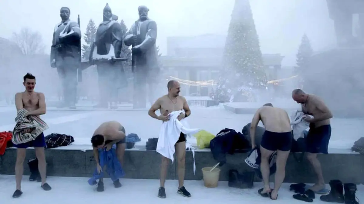 به گزارش رکنا ، اعضای یک باشگاه ورزشی در نووسیبیرسک روسیه پس از غوطه خوردن در آب یخ خودشان را خشک میکنند.