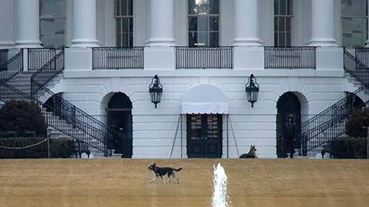 رکنا: تصویری از جولان ۲ سگ خانواده جو بایدن در محوطه حیاط جنوبی کاخ سفید را می بینید.