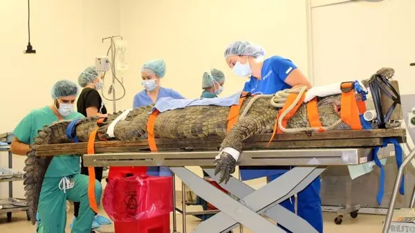 یک تمساح 158 کیلویی تحت عمل جراحی قرار گرفت.