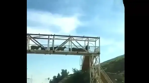 رکنا : شاید باور نکنید اما این گوسفندها خیلی راحت از روی پل هوایی رد شدند.