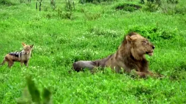 این شیر نر طعمه شیر و شغالها شد + فیلم