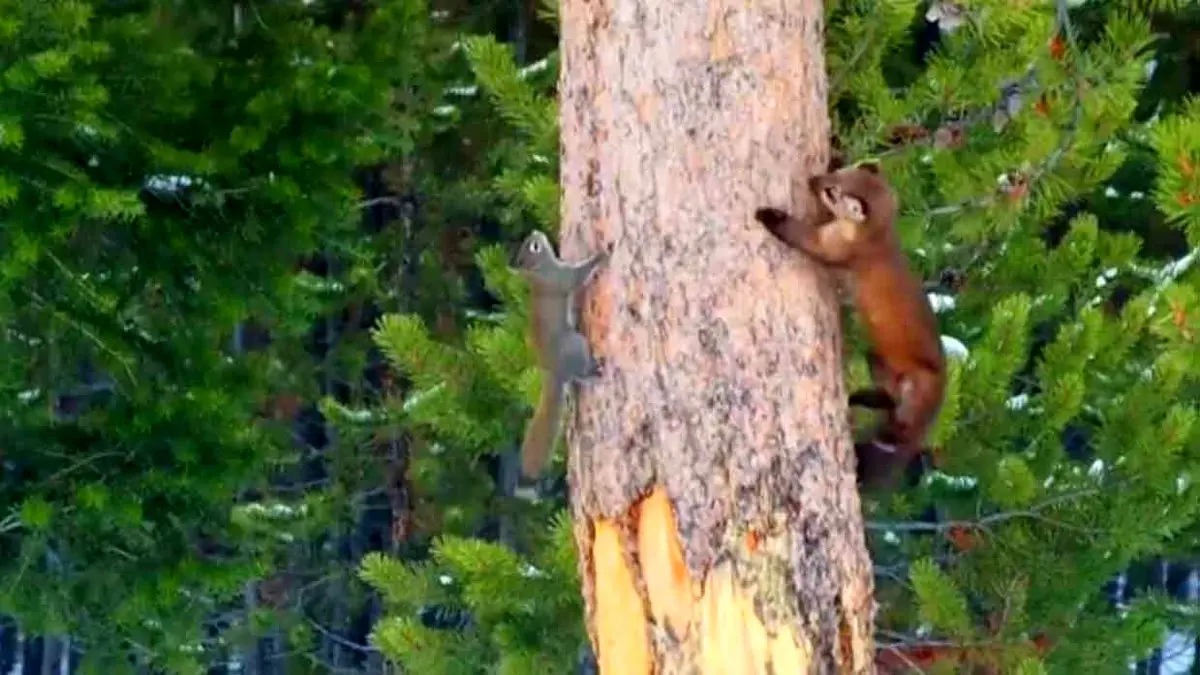 یک سمور در پارک ملی یلو استون آمریکا اقدام به شکار یک سنجاب کرد.