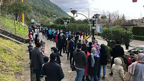 رکنا: تصویری از صف طولانی و شلوغ برای تلکابین و سورتمه در «نمک آبرود» مازندران را مشاهده کنید.