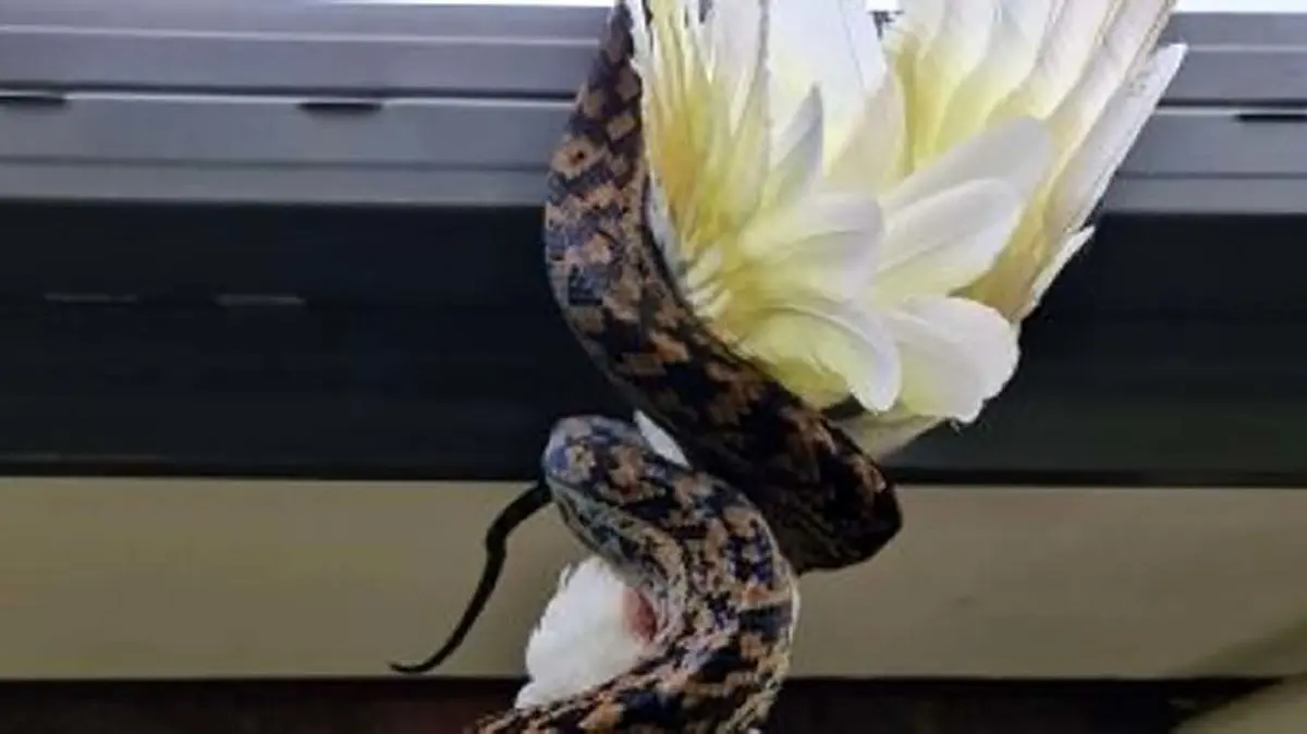 تصاویر حیرت انگیز از بلعیده شدن طوطی سفید توسط مار 3 متری