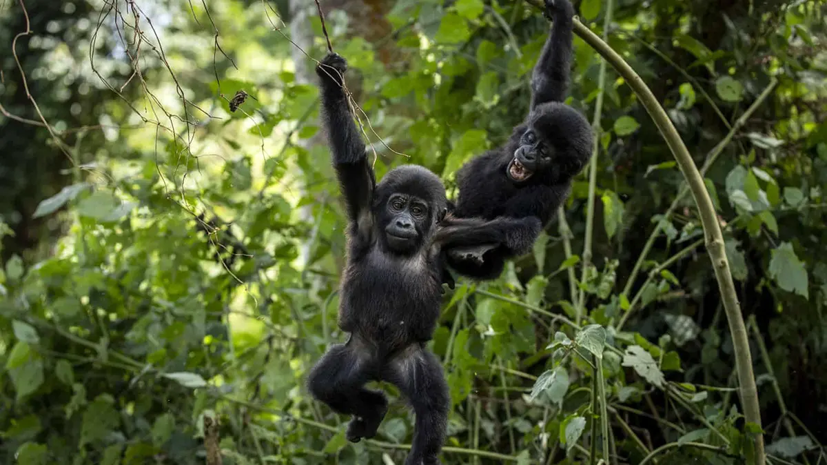 رکنا : بچه گوریل ها در حال شیطنت روی درخت مشاهده شدند.