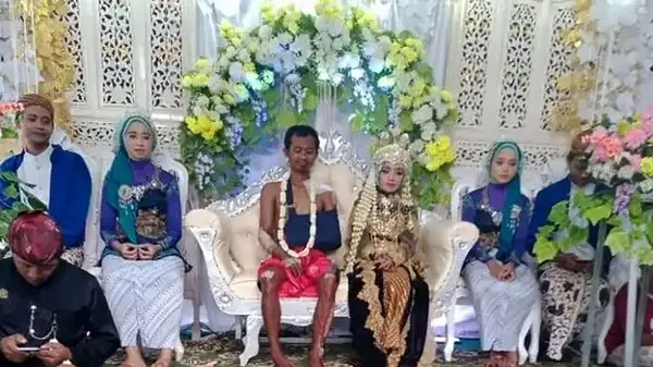 به گزارش رکنا ، شاید شنیدن خبر اینکه یک داماد با زیرشلواری در مراسم جشن عروسی خود شرکت کرده کمی برایتان عجیب و خنده‌دار باشد. اما واقعا چنین اتفاقی در یک مراسم عروسی در اندونزی رخ داده است. تصاویر منتشر شده عروس را در حالی که یک لباس سنتی بسیار زیبا بر تن دارد در کنار داماد که با زیرشلواری در مراسم شرکت کرده نشان می‌دهد. در این تصاویر داماد در حالی که شانه و دستش و همچنین زانو‌های او باندپیچی شده دیده می‌شود.