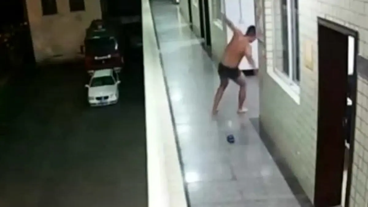 رکنا : صدای آژیر یک آتشنشان چینی را بلافاصله از حمام بیرون کشید.