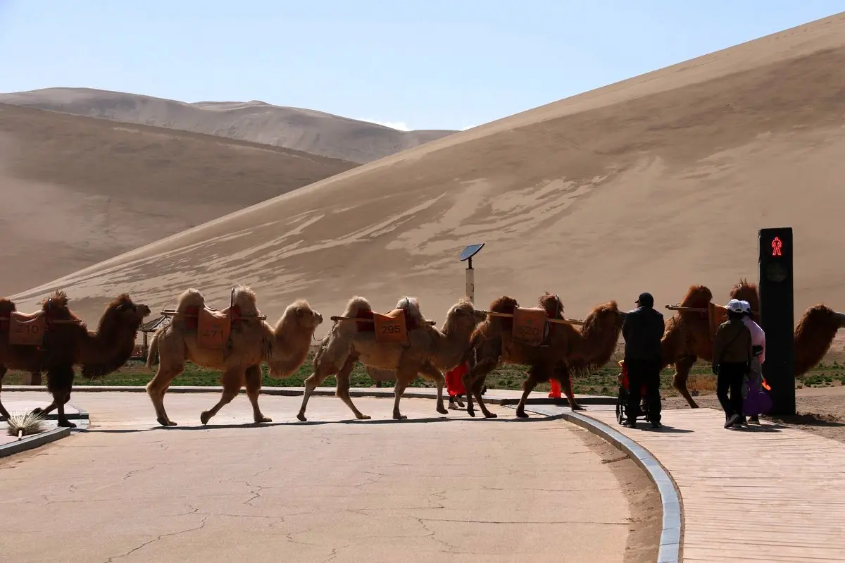 مقامات چینی اولین چراغ اختصاصی تردد شترها در جهان را در وسط بیابانی در کوه مینگچا در دون هوانگ گانسو چین نصب کرده اند. یکی از روزنامههای این گفت که هدف از این کار این است که گله داران شتر با ترتیب و منظم، طبق پیاده روها، خطوط ماشین و تقاطعها، به جهات مختلف هدایت شوند. تصاویری از این چراغ در اینترنت منتشر شده که شترها با قرمز شدن چراغ میایستند و دوباره که سبز شد به راه خود ادامه میدهند.