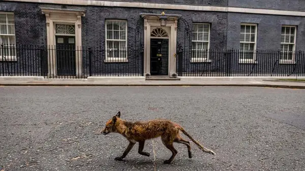 قدم زدن روباه در مقابل ساختمان مقر نخست وزیری بریتانیا + عکس