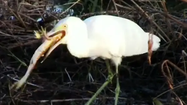 بلعیدن قورباغه بزرگ توسط حواصیل + فیلم