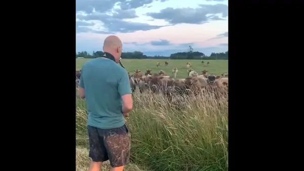 به گزارش رکنا ، در این فیلم مشاهده می کنید که یک گله گاو در حال حرکت در مزرعه ای بودند که این نوازنده اقدام به نواختن ساکسوفن می کند.