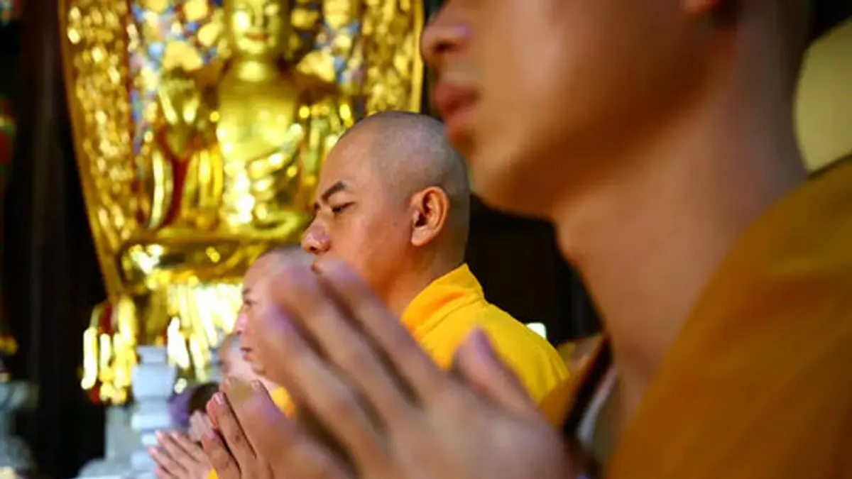 زن بودایی برای عبادت روی زمین افتاد + فیلم