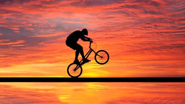 فیلمی از حرکت نمایشی یک دوچرخه سوار روی پل به نمایش گذاشته شده است.