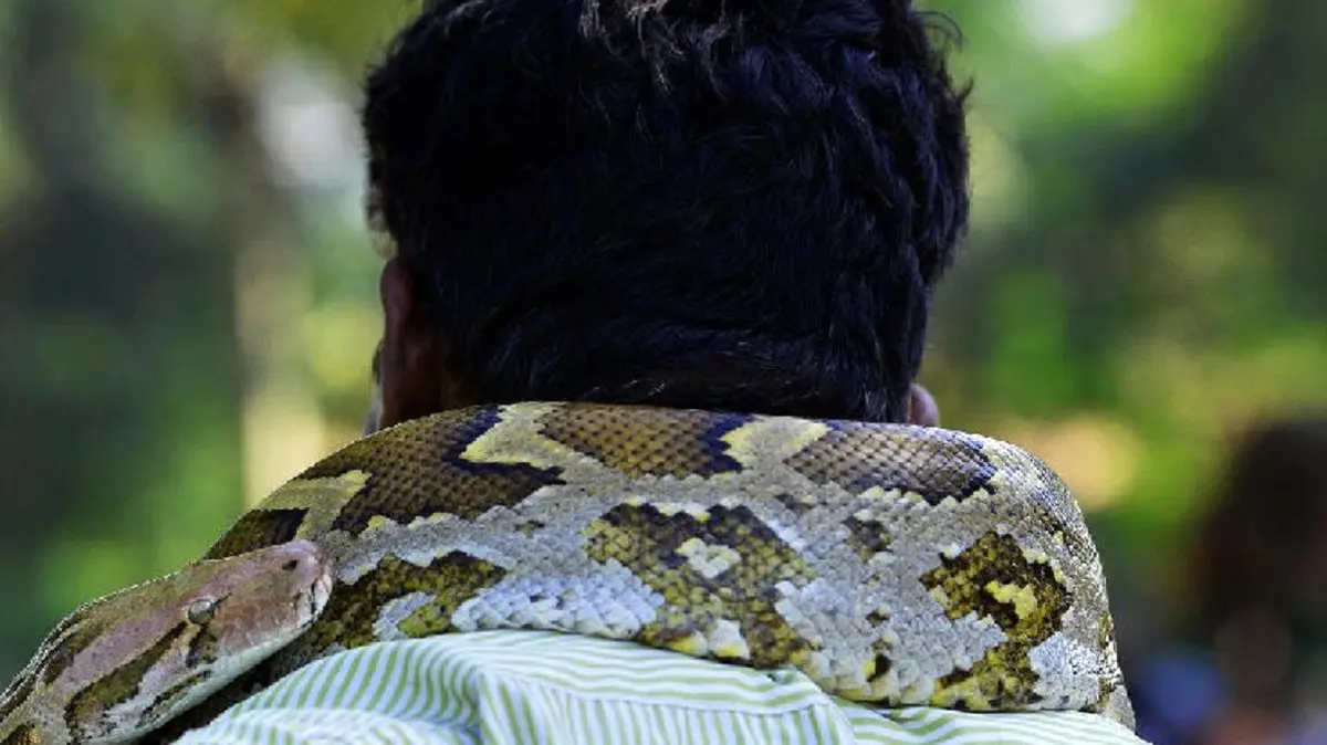 رکنا : یک مار پیتون 200 کیلویی با موتورسیکلت جا به جا شد.