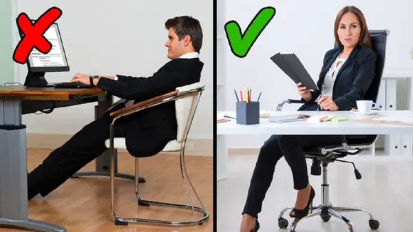 همه ما دوست داریم وقتی در خانه هستیم راحت روی مبل جلوی تلویزیون لم بدهیم، اما خیلی‌ها محیط کار را با محیط خانه اشتباه می‌گیرند و بیش از حد راحت پشت میز می‌نشینند. این کار نه تنها برای کمر مضر است بلکه برای شخصیت تان نیز خوب نیست و تصویرتان را نزد دیگران خراب می‌کند. با این طرز نشستن دیگران تصور می‌کنند کاری که انجام می‌دهید برای تان مهم نیست، چون مثل آدم‌های تنبل بیش از حد راحت نشسته اید. کارفرما از حالت نشستن شما می‌تواند تشخیص دهد که تا چه اندازه به کارتان اهمیت می‌دهید.
