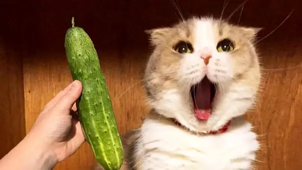 واکنش گربه در مواجهه با خیار + فیلم