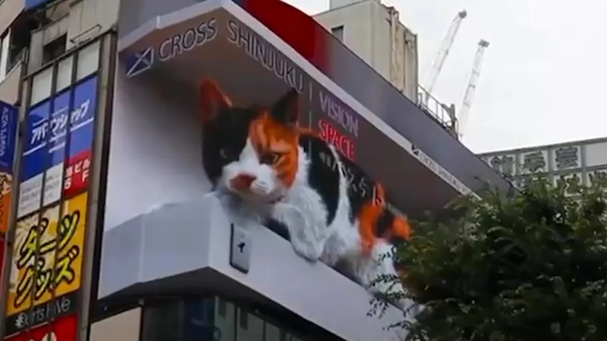 یک گربه سه‌بعدی غول‌پیکر بر بالای ساختمان ایستگاه قطار شینجوکو در توکیو جاخوش کرده است. جالب است که این گربه از آنجا رهگذران و خودروهای عبوری را زیر نظر گرفته است.