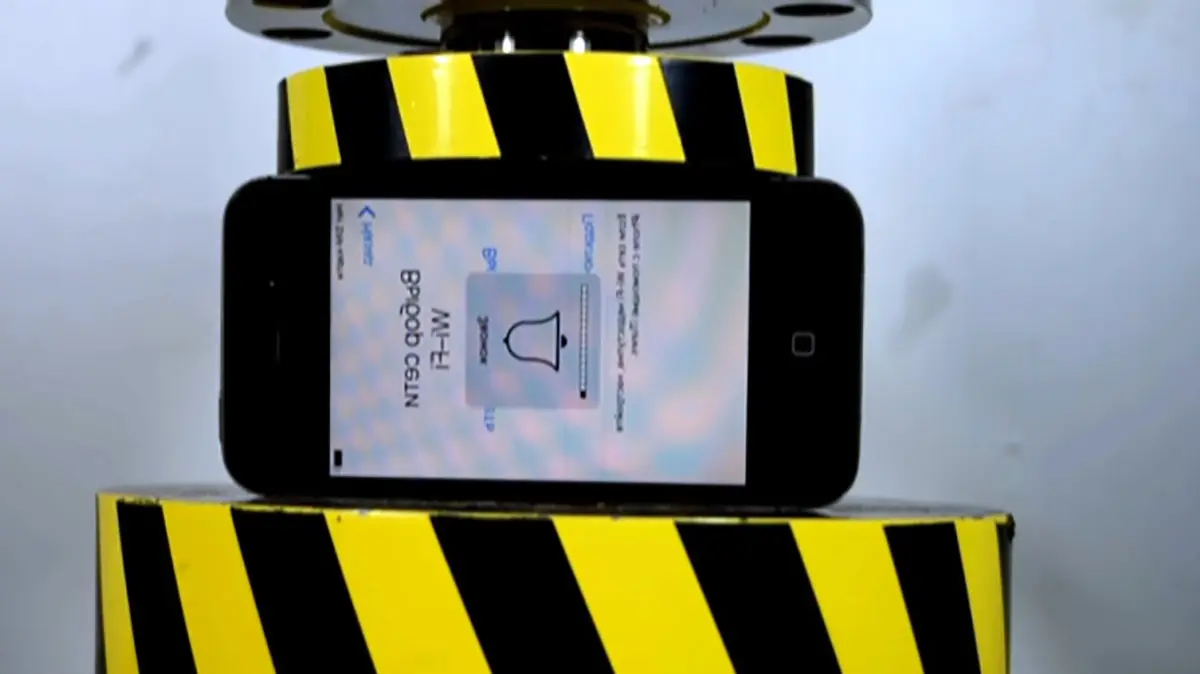 وسایل مختلف را زیر دستگاه پرس قرار دادند. فشار وارد بر این وسایل بسته به جنس و وزن آنها منجر به تخریب شان در زمان های مختلف با کیفیت های متفاوت شد. در این فیلم قرار دادن تلفن همراه و سایر وسایل را زیر دستگاه پرس مشاهده می کنید.