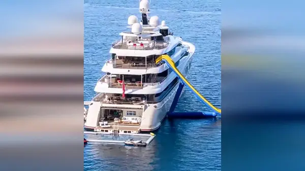 به گزارش رکنا ، سرسره آبی ۸۰ متری سوپر قایق اِمینِنس در نزدیکی سواحل سا کالوبرا در مایورکای اسپانیا قرار دارد.