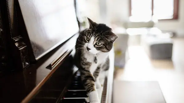 گربه علاقه مند به هنر دیده اید؟ این گربه در حال نواختن پیانو است.