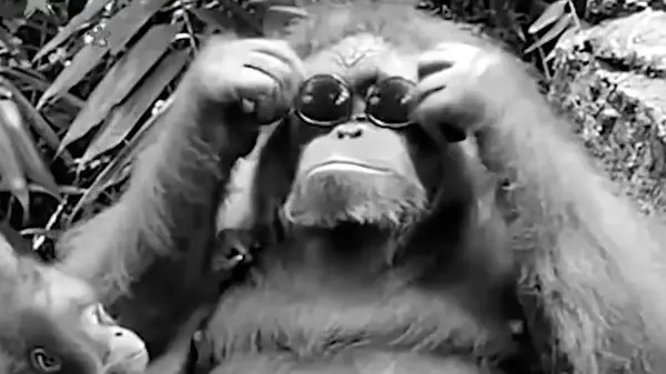 یک گردشگر به باغ وحشی واقع در اندونزی رفت. او عمداً عینک آفتابی خود را به درون قفس اورانگوتان انداخت تا واکنش این حیوان را ببیند. این اورانگوتان مادر در کمال تعجب عینک را روی چشم‌های خود امتحان کرد و سپس آن را برای صاحبش پس فرستاد.