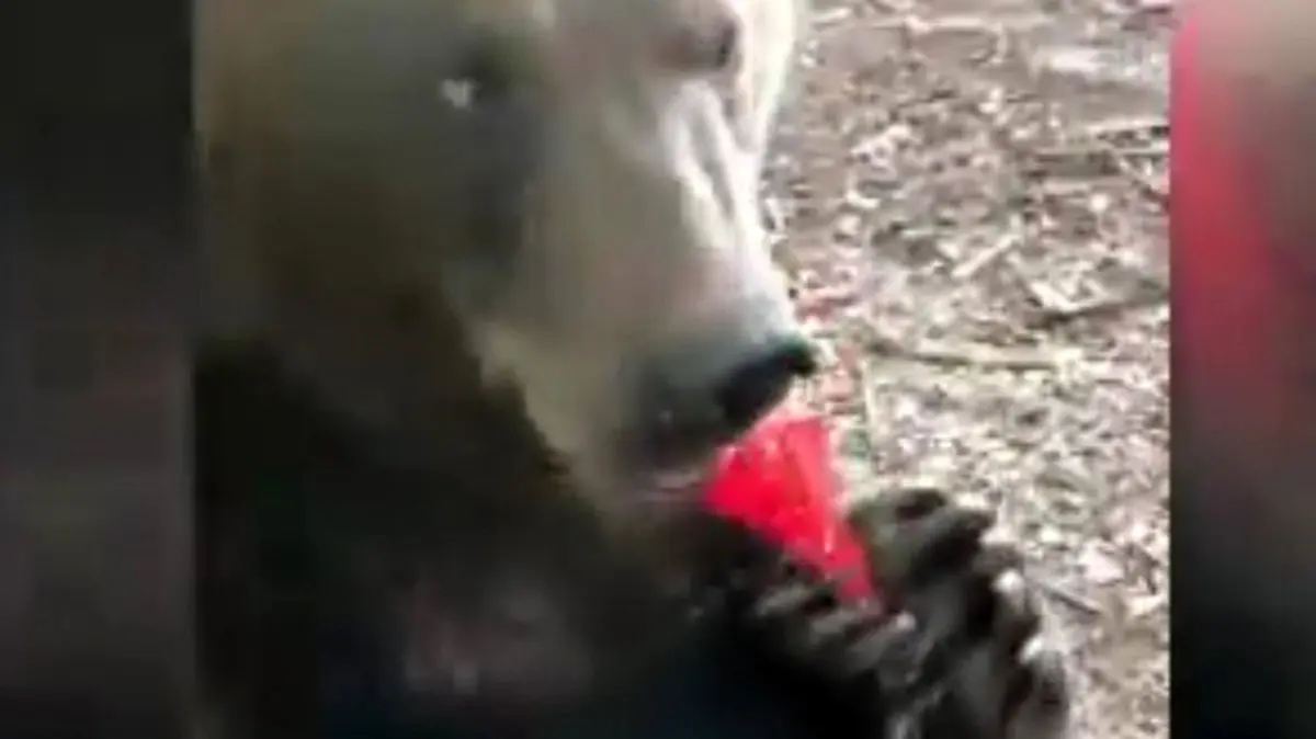 یک بازیگر سیرک، سرپرستی خرسی دو ماهه را بر عهده گرفت و آن را اهلی کرد.