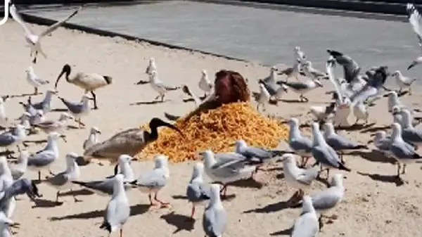 بنا به گزارش دیلی میل این مرد استرالیایی ۱۰۰۰ دلار چیپس خریداری کرده بود تا اعتماد مرغهای دریایی به خودش را مورد آزمایش قرار دهد. او با مخفی کردن خود در میان چیپسها دوست داشت ببیند آیا مرغهای دریایی به خاطر خوردن چیپسها به او نزدیک میشوند یا خیر.