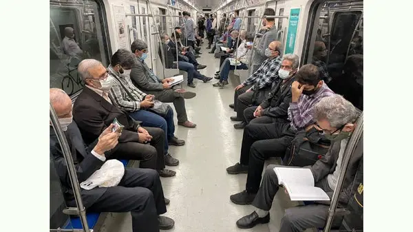 رکنا : مسافران این قطار مترو در تهران بیشتر در حال مطالعه بودند تا سرگرمی با موبایل.