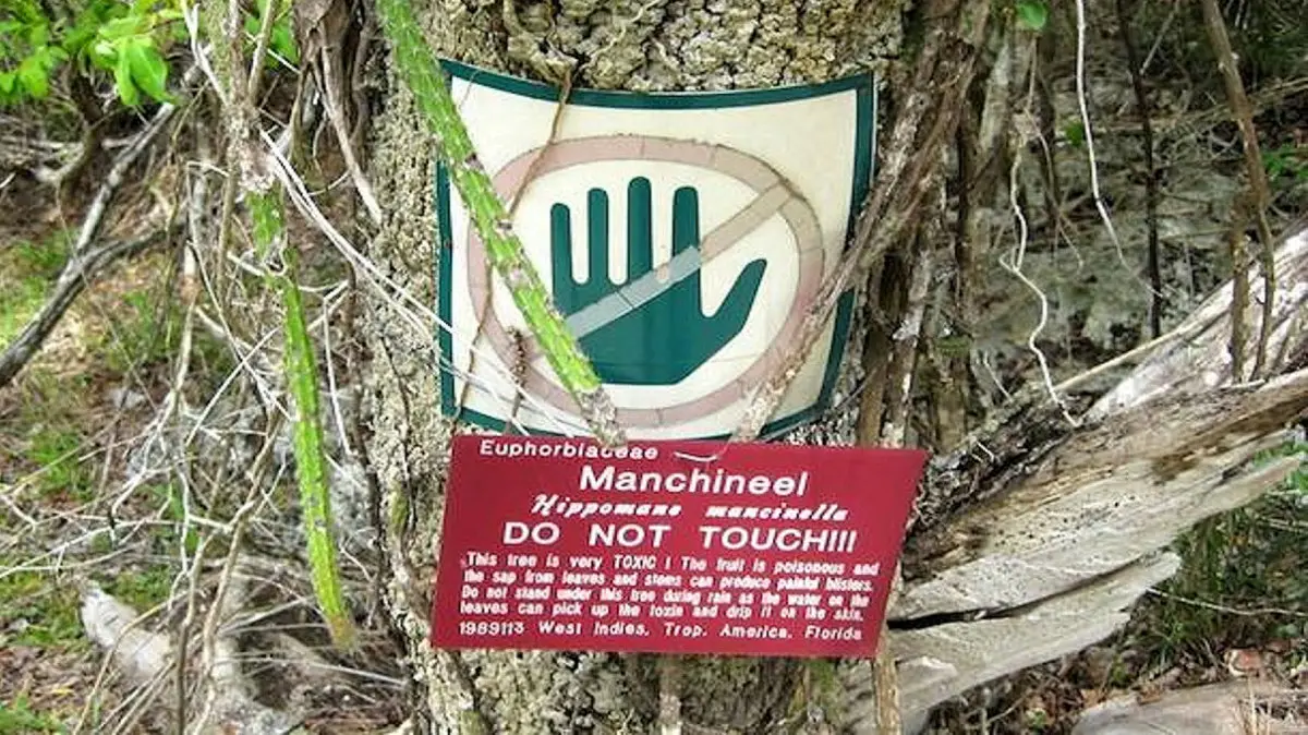 این درخت شیره غلیظ و شیری رنگی تولید میکند که از پوست، برگ و حتی میوه آن ترشح میشود و در صورت تماس با پوست میتواند باعث ایجاد تاولهای شدید مانند سوختگی نیز میشود. به دلیل این ویژگیهای خطرناک، در برخی از قسمتهای محدوده درخت، یک صلیب یا یک حلقه قرمز به معنی هشدار وجود دارد.