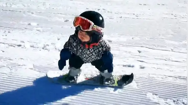مهارت عجیب دختربچه 11 ماهه در اسنوبرد سواری + فیلم